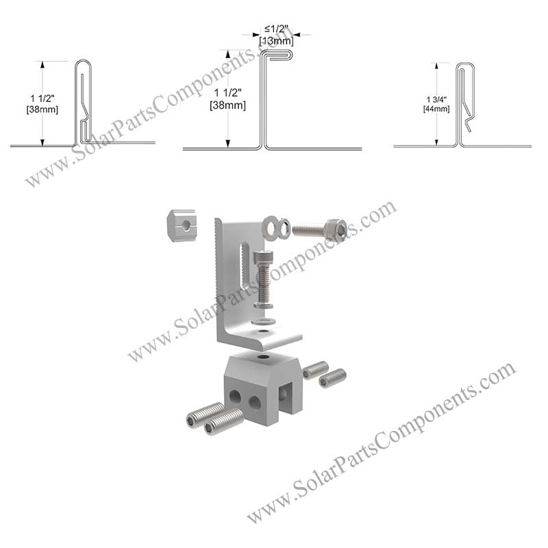 Solar Snap Lock roof clamps includes stainless steel hardware and the clamps are compatible with most common metal roofing materials.