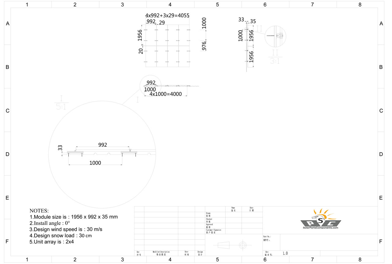 (1) PV modules size : 1956 mm x 992 mm x 35 mm ;