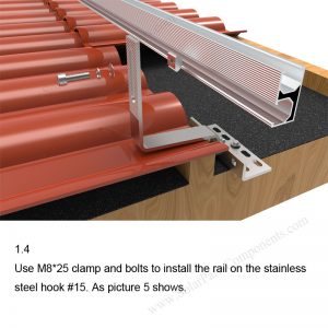 1.4 Use M8*25 clamp and bolts to install the rail on the stainless steel hook #15. As picture 5 shows.