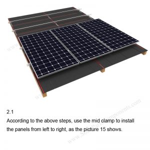 2.1 According to the above steps, use the mid clamp to install the panels from left to right, as the picture 15 shows.