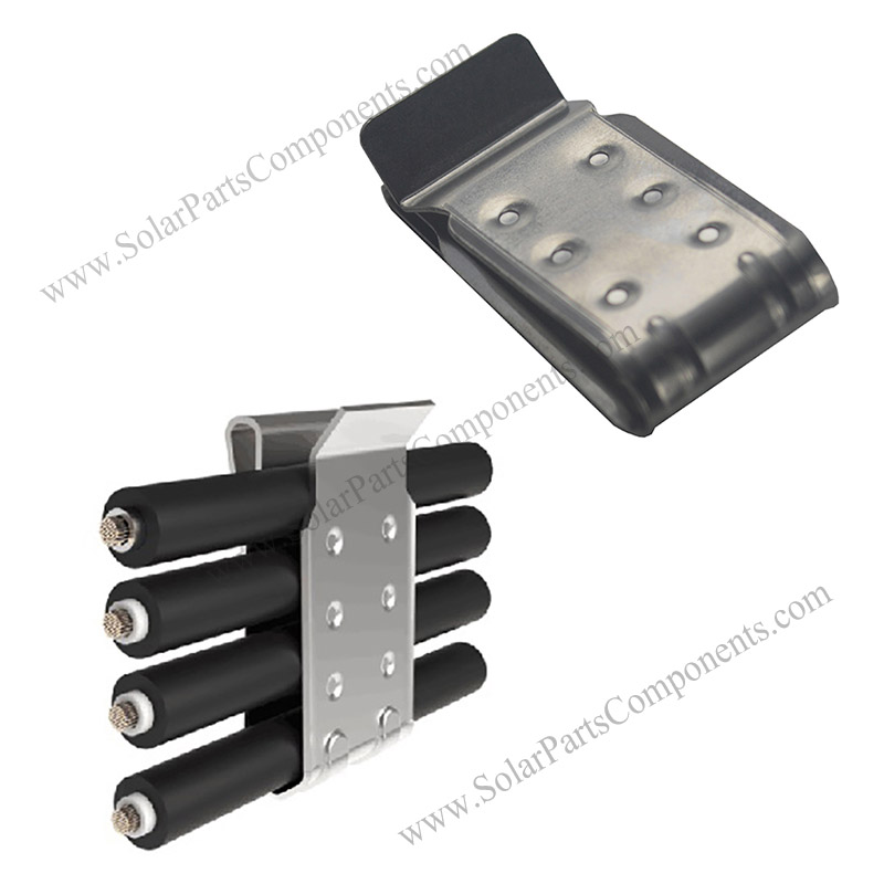 The universal design fits most modules and can be four wires. The clamp is made of corrosion-resistant stainless steel and is designed to prevent damage to the cable insulation. Simplifies wire management and creates a neater aesthetic for the solar PV array. The design of easy installation and disassembly requires only one part to be used, which is different from the cable tie.